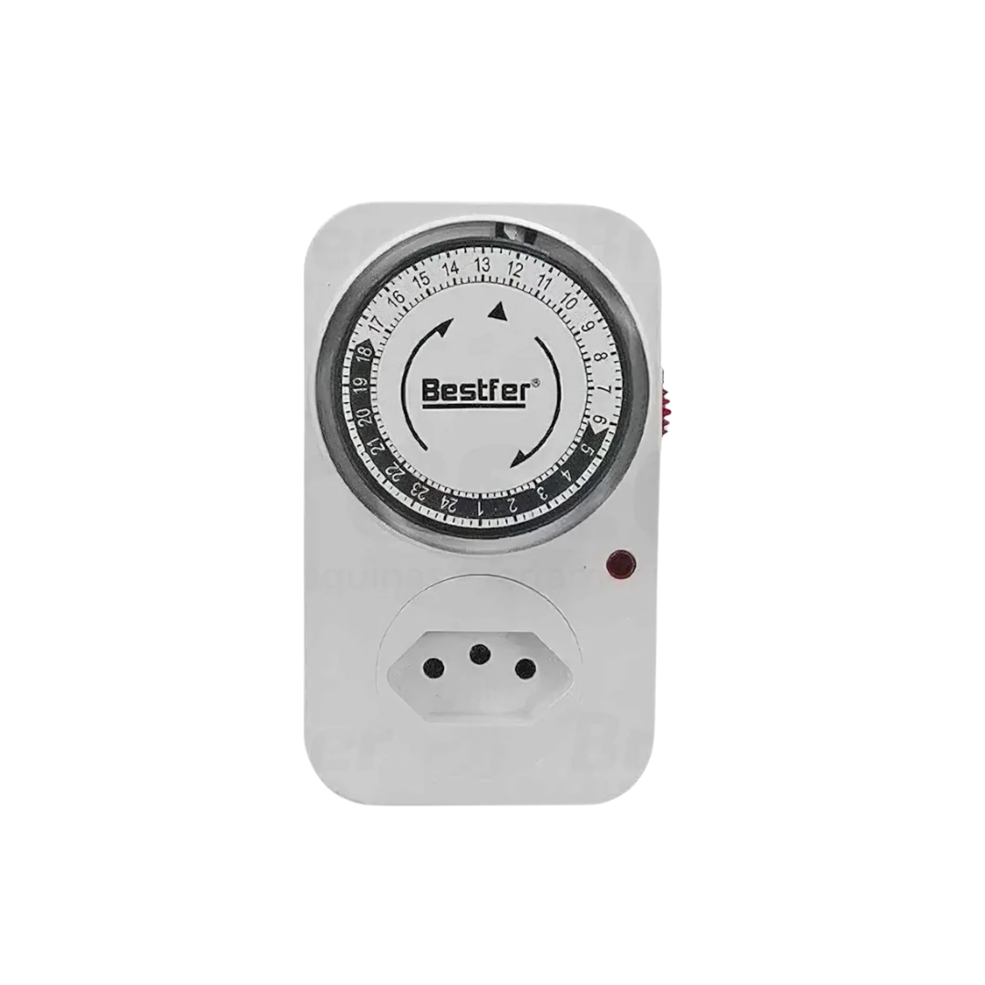 O Timer Analógico Bivolt 3 Pinos Bestfer é ideal para programar o tempo de funcionamento de equipamentos elétricos, proporcionando economia de energia e praticidade no dia a dia.